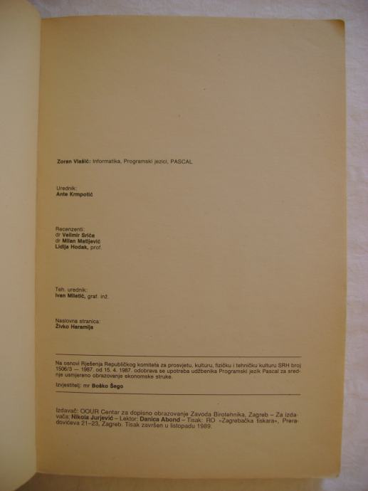 Zoran Vlašić - Pascal - Informatika; Programski jezici - 1989.
