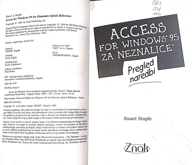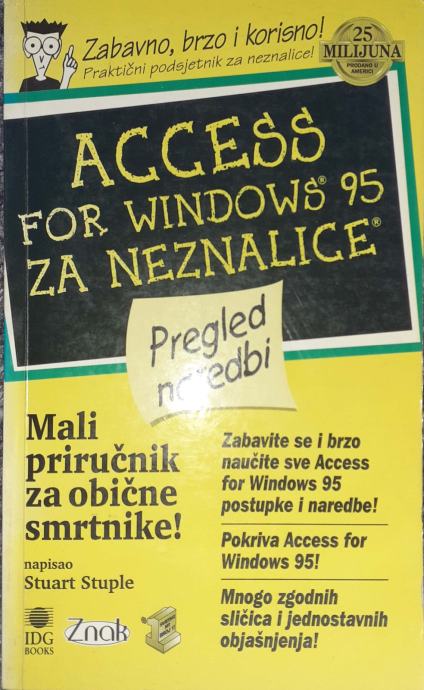 Access za Windows 95 za neznalice: pregled naredbi/Stuart J.Stuple; (prevela s eng. Nataša Ilić) 1996.