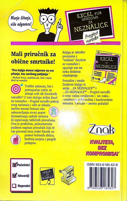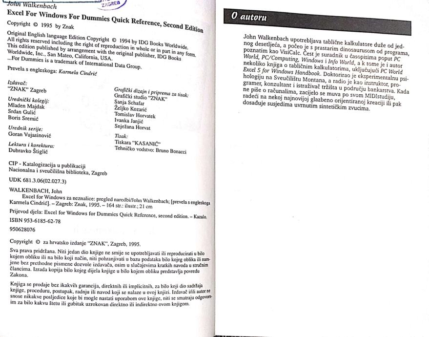 EXCEL za Windows za neznalice:pregled naredbi/John Walkenbach (prevela s eng. Karmela Cindrić) 1995.