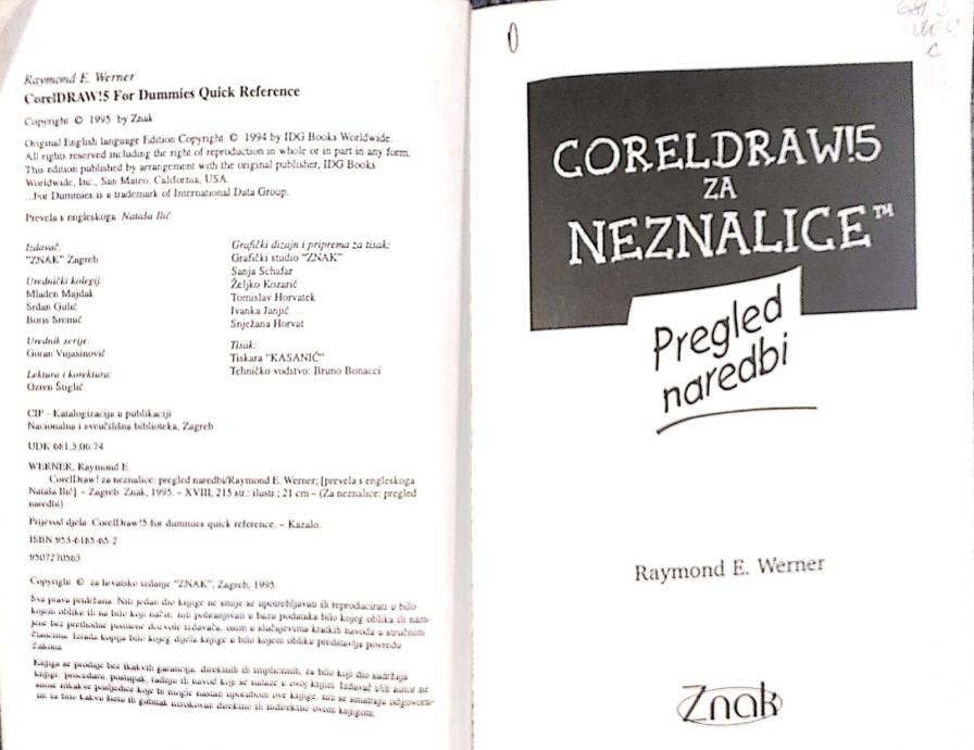CorelDraw za neznalice: pregled naredbi/Raymond E. Werner; (prevela s eng. Nataša Ilić) 1995.