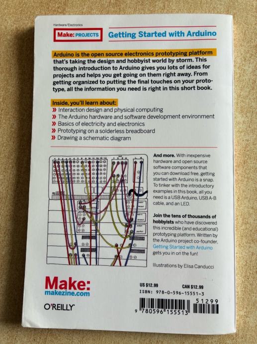 Prodajem rabljenu knjigu "Getting Started with Arduino" autora Massima Banzija, suosnivača Arduina. Knjiga je izdana u sklopu Make: Projects serije kod nakladnika O'Reilly. Radi se o stručnoj literaturi koja pokriva tematiku Arduina kao open source platforme za elektroničko prototipiranje.