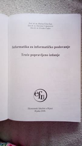 Informatika za informatičko poslovanje (Marina Čičin-Šain, Slavomir Vukmirović, Zvonko Čapko), Ekonomski fakultet u Rijeci, Rijeka,