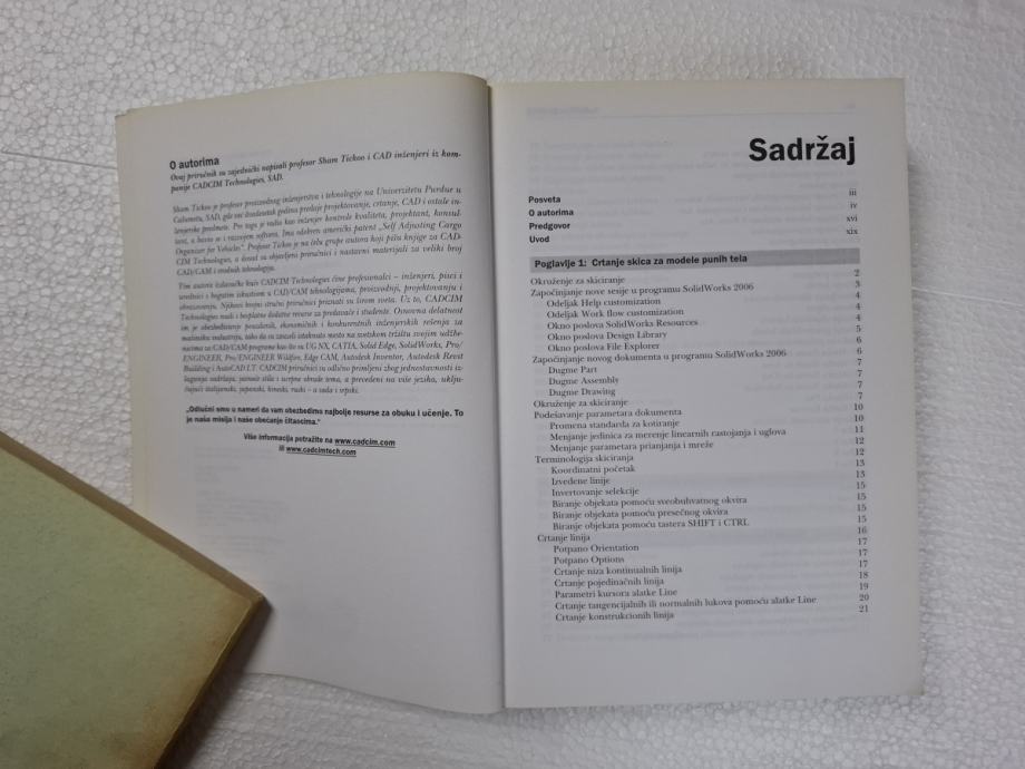 Sadržaj: Predgovor ; Uvod ; Poglavlje 1: Crtanje skica za modele punih tela ; Poglavlje 2: Obrada i izmena skica ; Poglavlje 3: Dodavanje relacija i mera skicama ; Poglavlje 4: Napredne tehnike kotiranja i opcije osnovnih elemenata ; Poglavlje 5: Izrada referentne geometrije ; Poglavlje 6: Napredne alatke za modelovanje – I ; Poglavlje 7: Napredne alatke za modelovanje – II ; Poglavlje 8: Menjanje elemenata ; Poglavlje 9: Napredne alatke za modelovanje – III ; Poglavlje 10: Napredne alatke za modelovanje – IV ; Poglavlje 11: Modelovanje sklopova - I Poglavlje 12: Modelovanje sklopova - II ; Poglavlje 13: Rad s tehničkim crtežima - I ; Poglavlje 14: Rad s tehničkim crtežima - II ; Studentski projekti ; Spisak termina korišćenih u knjizi ; Indeks.