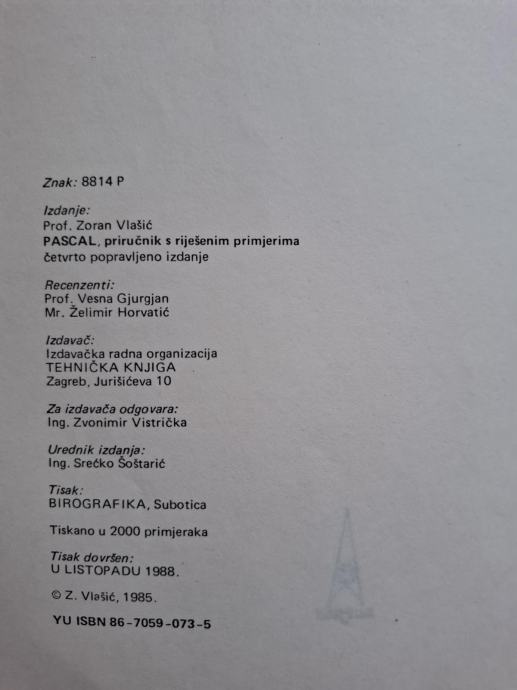 Zoran Vlašić: PASCAL priručnik s rješenim primjerima