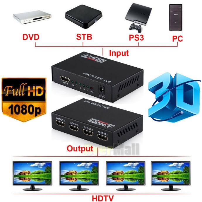 TV Razdjelnik za 2-4 TV 1080P HDMI Port Male to 4 Port HDMI Splitter TV Ultra HD 4K 3D , sa pojačanjem signala.