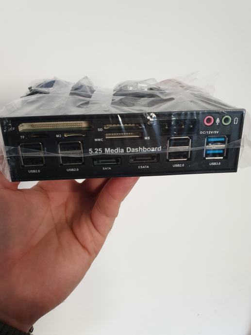 Prodajem 5.25"PC Media Dashboard Front Panel USB3.0 Hub USB3.0/2.0 Internal Card Reader. Stavka je korištena 15 dana i vraćena u originalnu ambalažu. Meni je višak zato je prodajem.