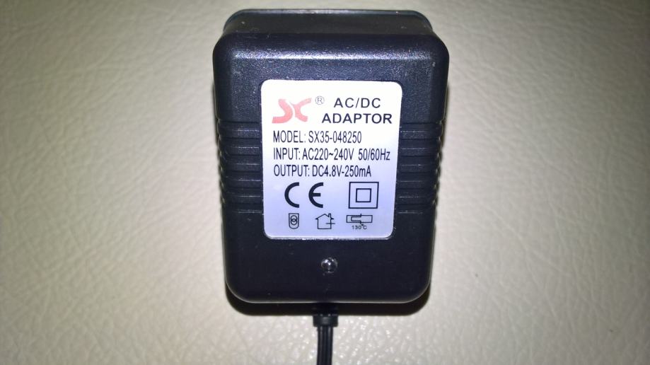 Prodajem AC adaptor SX35-048250 sa izlazom 4,8V - 250mA. Nalazim se u Rijeci. Dostava je moguća i putem pošte i tiska. Komunikacija je moguća i putem sms-a i mail-a, viber. Pogledajte i ostale moje oglase. Tel. 098/900-3517.
