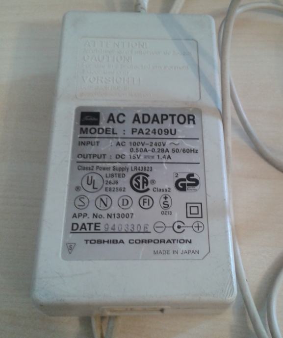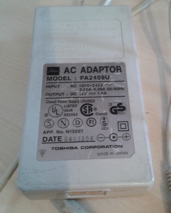 1. Toshiba adapter 15V 1,4A Model PA2409U