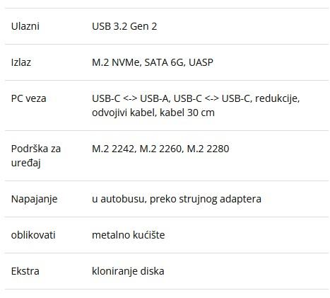 • Napajanje USB sabirnice - za M.2 i 2,5" pogone dovoljno je napajanje