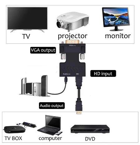 Adapter konverter Hdmi PC ili DVB-T2 prijemnik na VGA 15 muški TV, monitor, projektor sa VGA i audio ulazom