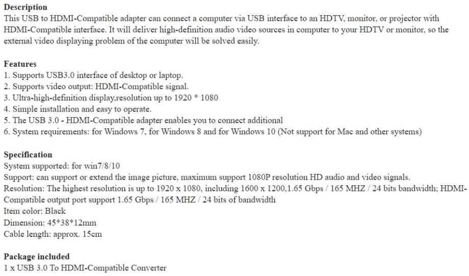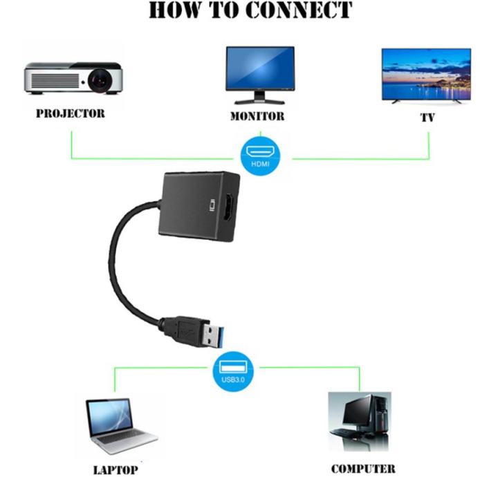Adapter Laptop, PC izlaz USB 3.0 na HDMI projektor, monitor, tv 15cm