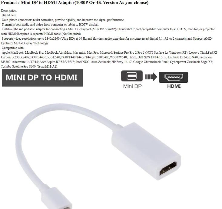 Support Mini Display Port 1.1a Dual-mode input.