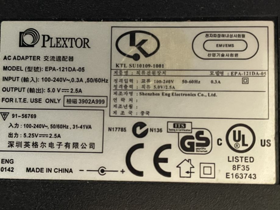 Adapter strujni 5V 2,5A Plextor EPA-121DA-05 za napajanje i punjenje, ulaz AC 100-240V 0,3A / izlaz DC 5V 2,5A, konektor vanjski fi 4mm, ispravan i malo korišten, kućni višak.