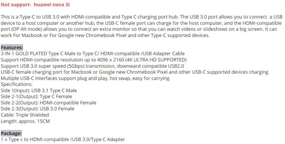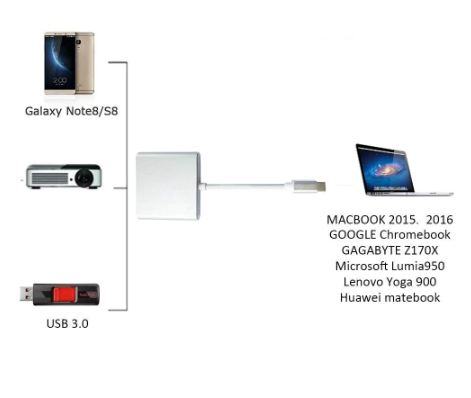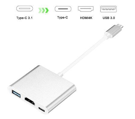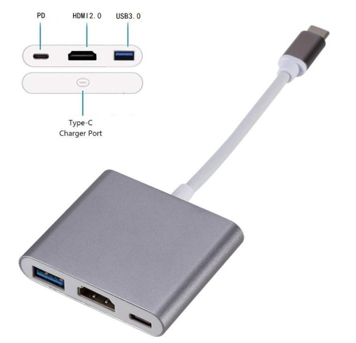 Adapter Hub USB-C u 4K Hdmi F +USB 3.1aF +USB-C PD Mac Thunderbolt