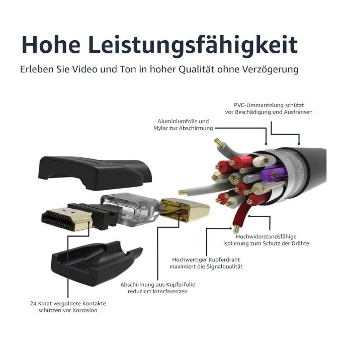 AmazonBasics HDMI kabel verzije 2.0 omogućuje prenos 4K video sadržaja pri 60 Hz, s 48-bitnom dubinom boja i maksimalnom propusnošću od 18 Gbps.