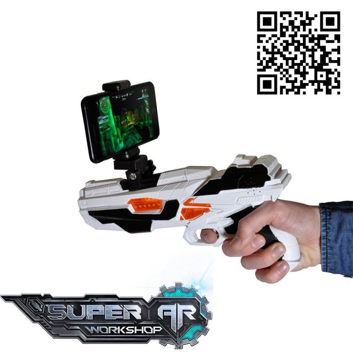 AR gun (Augmented Reality) je zabavan gadget koji radi sa vašim pametnim telefonom i služi za igranje mobilnih igara. Preuzmite odgovarajuću aplikaciju, spojite AR gun preko Bluetootha sa pametnim telefonom i akcija može početi. Najzabavnije je igrati pucačine iz prvog lica, jer na taj način možete iskorititi 360° rotacije i najveću mobinost tijekom igranja. Super AR aplikacija podržava i augmentiranu stvarnost, pa možete pucati po neprijateljima dok se u pozadini prikazuje vaša trenutna okolina. Ako vaši klinci vole mobilne igre, ovaj proizvod će ih oduševiti.