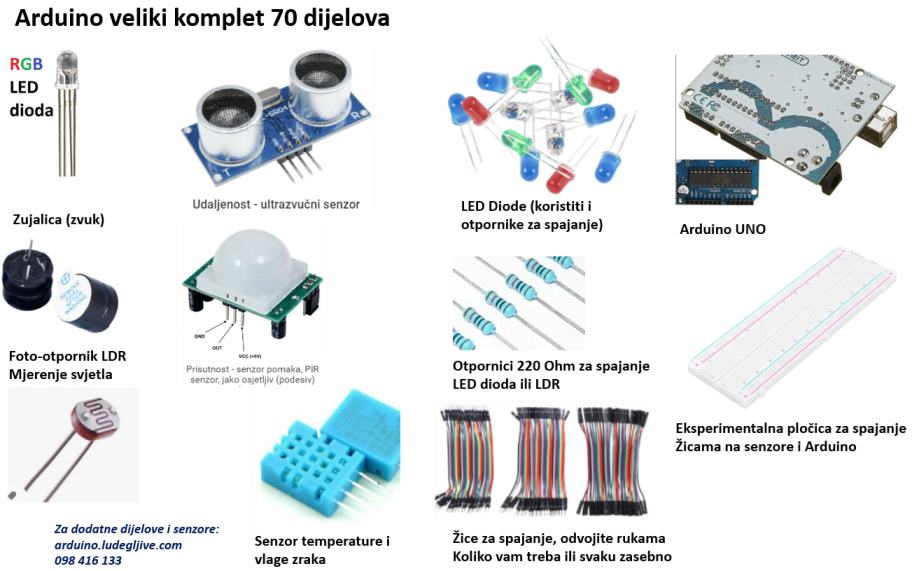 Arduino UNO set VELIKI komplet 70 dijelova senzori, LED, pločica,žice