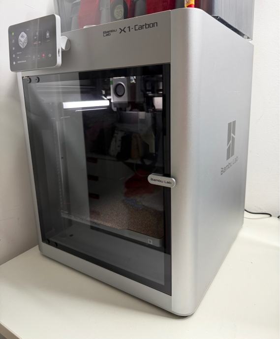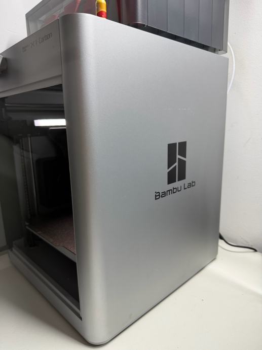 Prodajem Bambu Lab X1-Carbon 3D printer. Radi se o vrhunskom FDM printeru poznatom po brzini ispisa, preciznosti i pouzdanosti. X1C model dolazi sa zatvorenom komorom što omogućava rad s različitim materijalima uključujući i one zahtjevnije poput ABS-a, ASA, PA i sličnih. Opremljen je CoreXY kinematikom za brze i točne pokrete, automatskim kalibriranjem podloge, LiDAR-om za detekciju greške prvog sloja te kamerom za praćenje ispisa na daljinu.