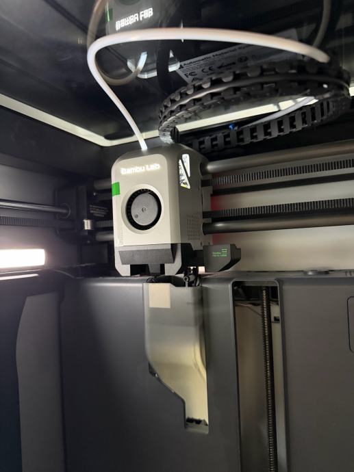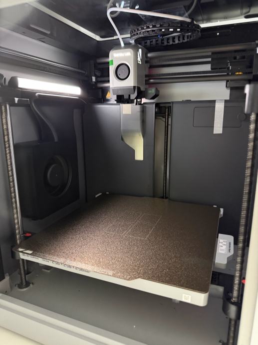 Printer ima veliki radni prostor i omogućava kvalitetne ispise uz podršku multi-color opcija preko AMS sustava. Zahvaljujući zatvorenom dizajnu, temperatura u komori je stabilna što rezultira boljim rezultatima ispisa i smanjuje pojavu warpinga kod materijala osjetljivih na temperaturne promjene.