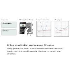 The service can be accessed by scanning QR codes displayed on the calculator screen.