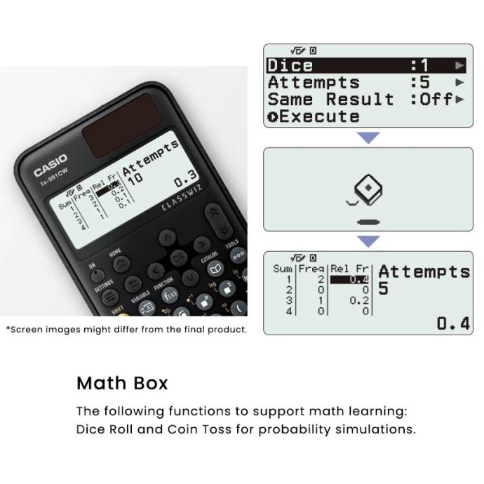 Visual, interactive and textbook-based displays make operation easier for teaching the use of scientific calculators, so you can concentrate on teaching mathematics.
