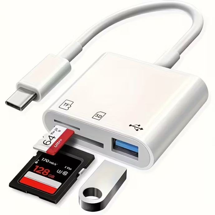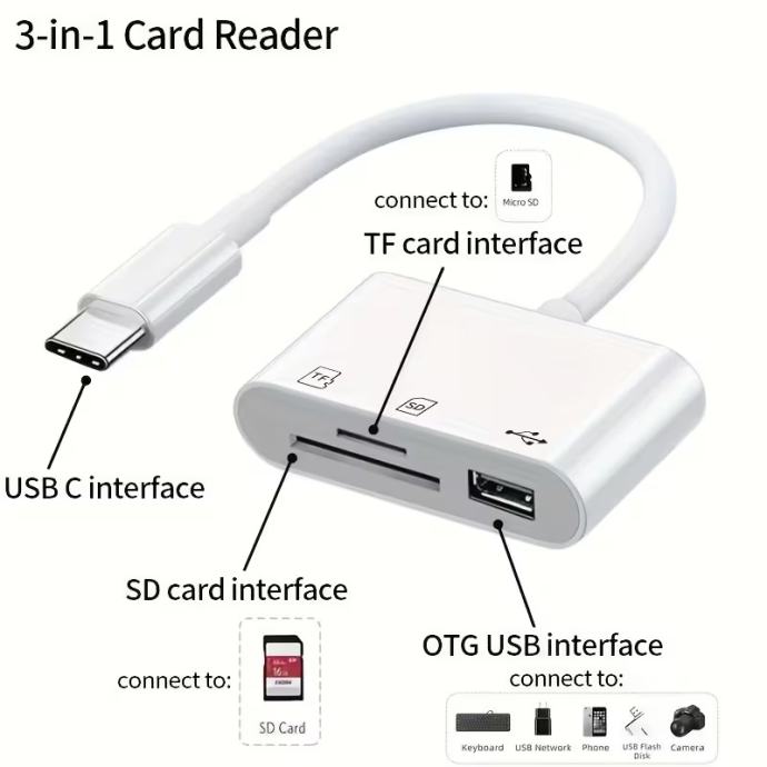 Čitač kartica velike brzine USB-C + USB 3.0 s adapterom - Plug and Play, prijenosan i kompaktan, kompatibilan s prijenosnim računalima/telefonima, nije potrebna baterija, brz prijenos podataka, pribor za prijenosno računalo, elegantan dizajn, izdržljiva konstrukcija