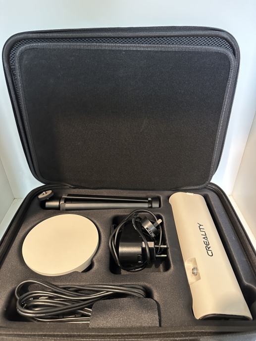 U paketu: 3D skener, stalak, softver za uređivanje, USB kabel i dodatna oprema
