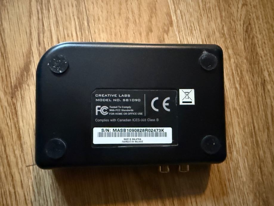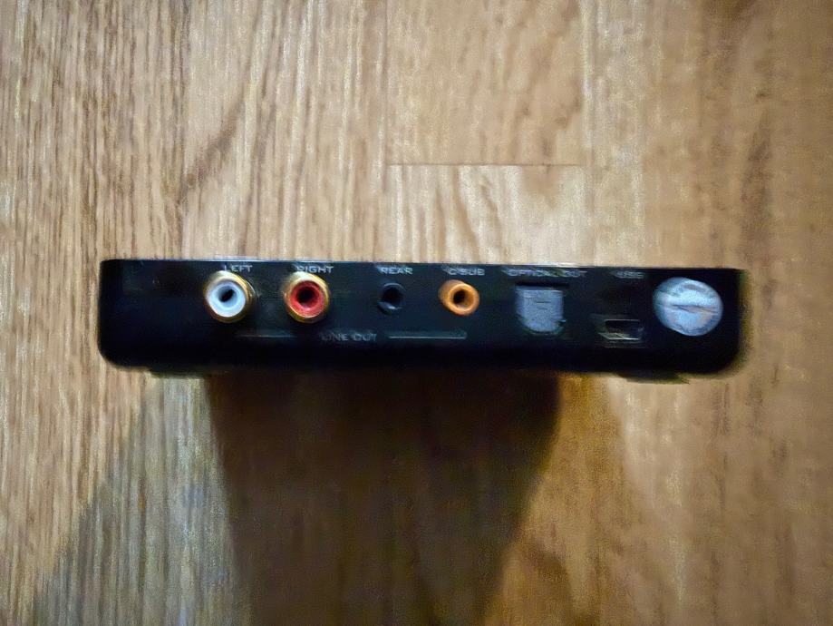 Vanjska USB zvučna kartica s podrškom za 5.1 surround, Dolby Digital Live i SBX Pro Studio tehnologije. Odlična za filmove, glazbu i gaming. Uređaj je potpuno ispravan, korišten minimalno.