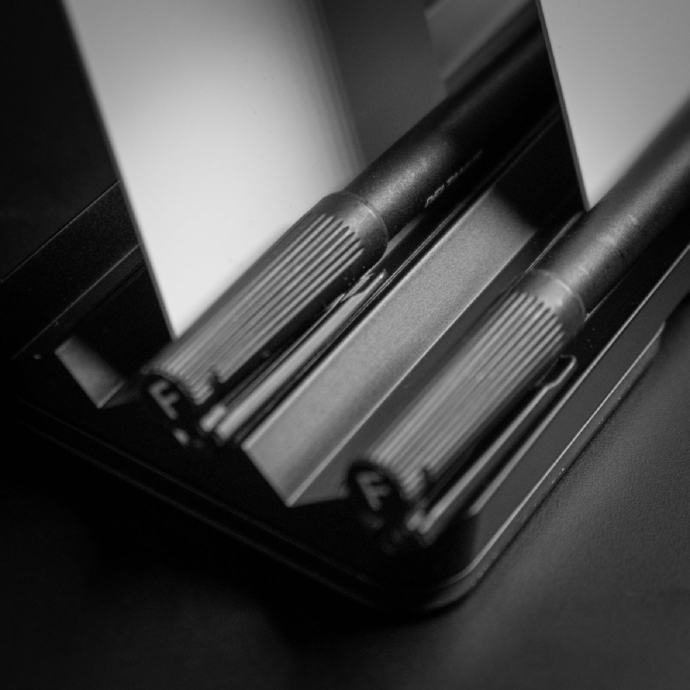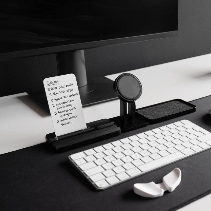 2 načina pričvršćivanja: Gurnite ga na stolnu podlogu za čvrsto pristajanje ili upotrijebite nano-traku na dnu za čvrsto stajanje na stolu. A za vas bezbrižne duše? Samo neka bude — stajat će ponosno i spremno, bez ikakvih obaveza.