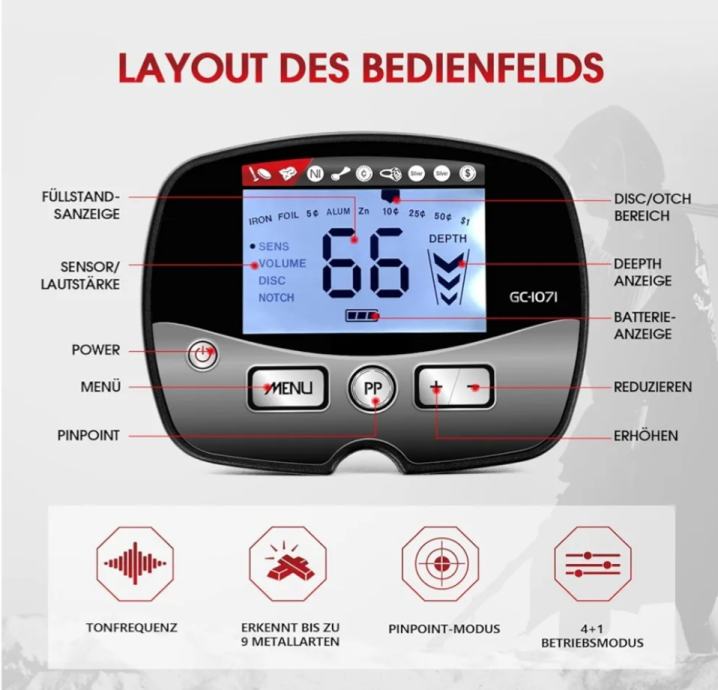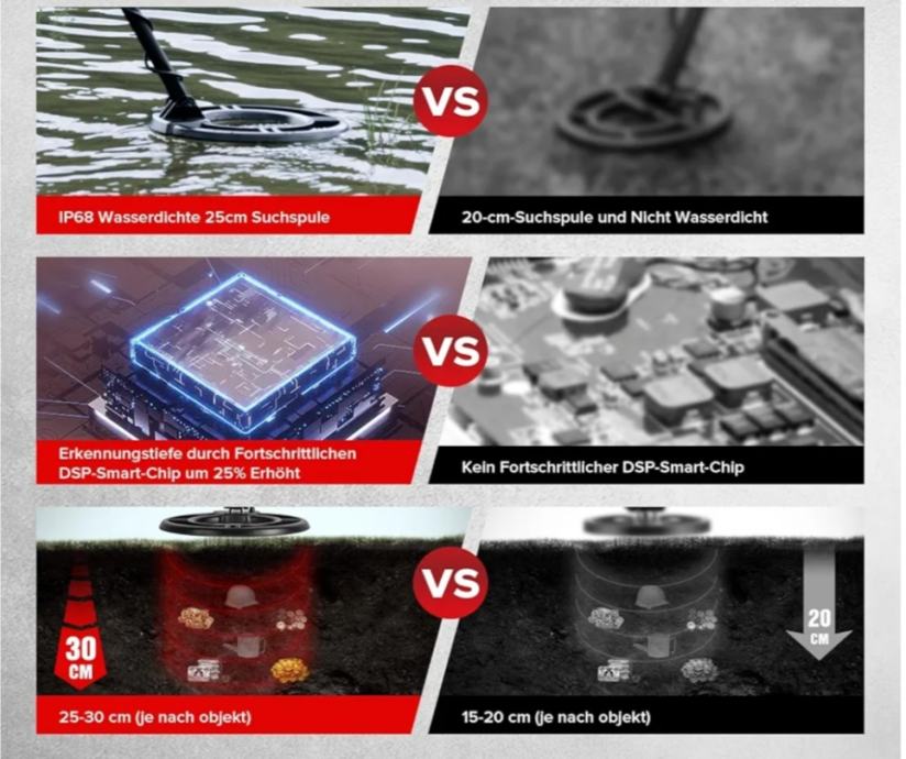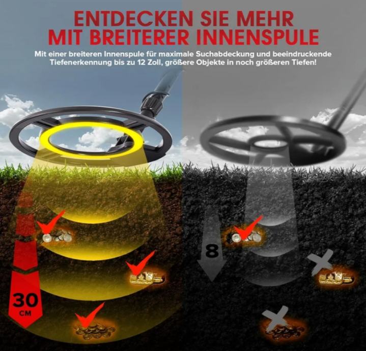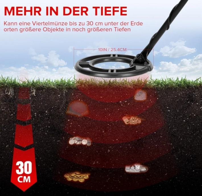 Profesionalni detektor metala , velika vodootporna zavojnica za traženje za dublju detekciju, detektor visoke osjetljivosti, funkcija preciznog pozicioniranja, LCD pozadinsko osvjetljenje.cm velika zavojnica za traženje: dubina detekcije: za aluminijske ploče veličine 50 x 50 x 1,2 cm, najveća dubina je 1,5 metara. Za 25 centi može otkriti 35 centimetara. [Vodootporan i otporan na vlagu]: metala na plaži, u vrtu ili bilo gdje gdje želite. LCD zaslon nije vodootporan. Transportna torba,