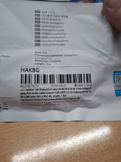 Prodajem potpuno novi DisplayPort kabel marke Vention duljine 1.5m. Kabel je visoke kvalitete, zapakiran u originalnom pakiranju i spreman za korištenje. Idealan je za povezivanje računala s monitorima ili drugim uređajima koji koriste DisplayPort sučelje. Greškom naručen.