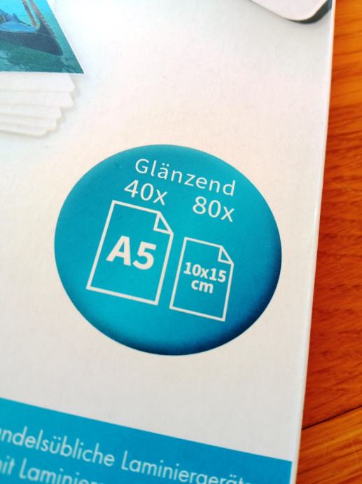 Folije za plastificiranje 120 kom. u dvije veličine (vidi sliku). Made in Germany, novo.