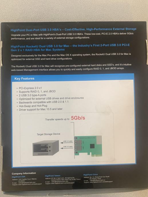 HIGH POINT ROCKETU DUAL USB 3.0 FOR MAC DUAL PORT USB 3.0 SUPER SPEED RAID HBA