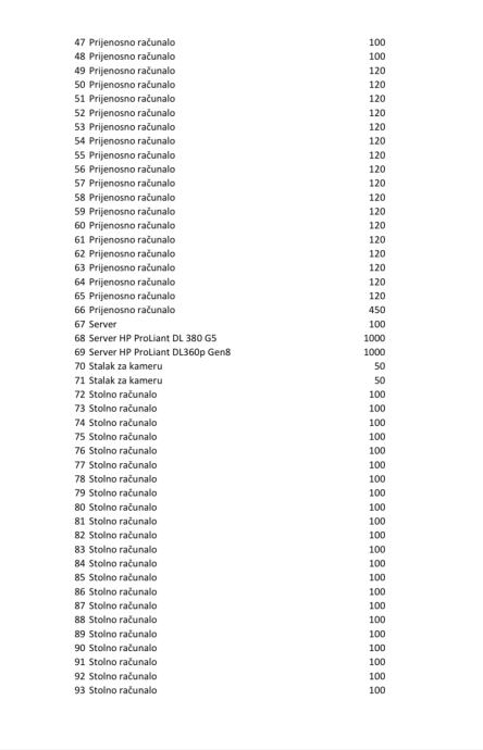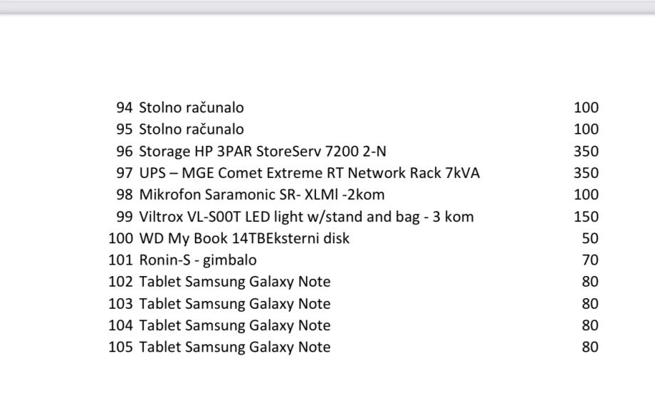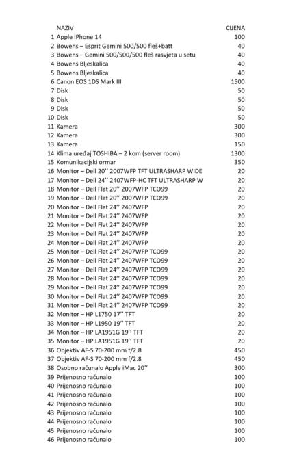 Imovina stečajnog dužnika i to IT oprema, a prema popisu koji se nalazi u prilogu.