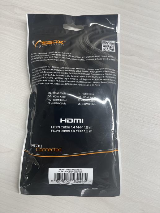 Kabel SBOX, HDMI (M) na HDMI (M) 1.4, High Speed sa Ethernet, 1.5m