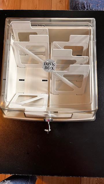 kutija za pohranu 100 kom. disketa, dimenzija 18x10 cm, s 6 podesivih pregrada, dva ključa, ispravna brava, plastika u odličnom stanju. Zapravo nije nikada korištena. Nema ambalažu.