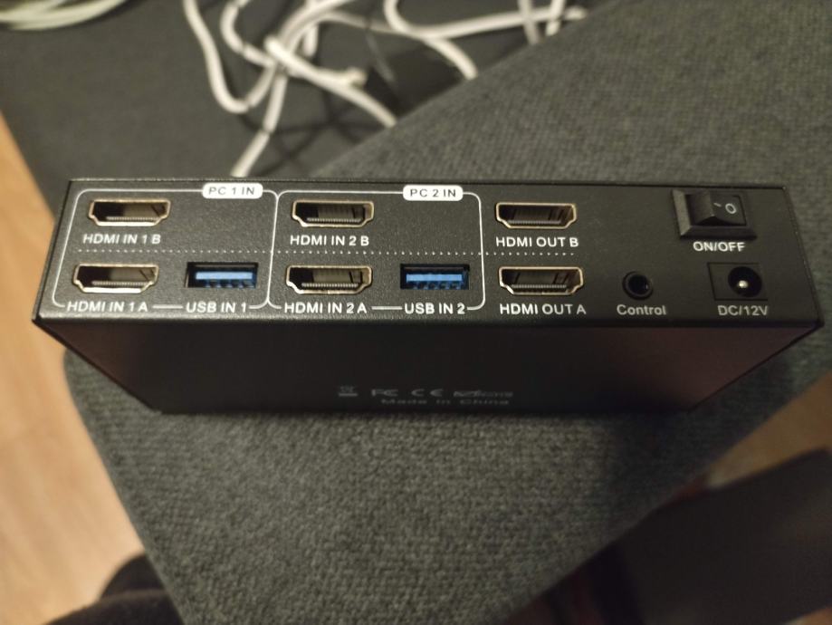 Korišten za spajanje tipkovnice, miša, dva monitora i audio interface-a na 2 računala.