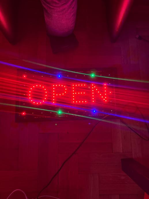 Prodajem rabljeni LED natpis OPEN display, idealan za trgovine ili ugostiteljske objekte. Svijetleći LED natpis jasno označava kada je vaš objekt otvoren i privlači pažnju kupaca. Uređaj je u funkcionalnom stanju i spreman za postavljanje.