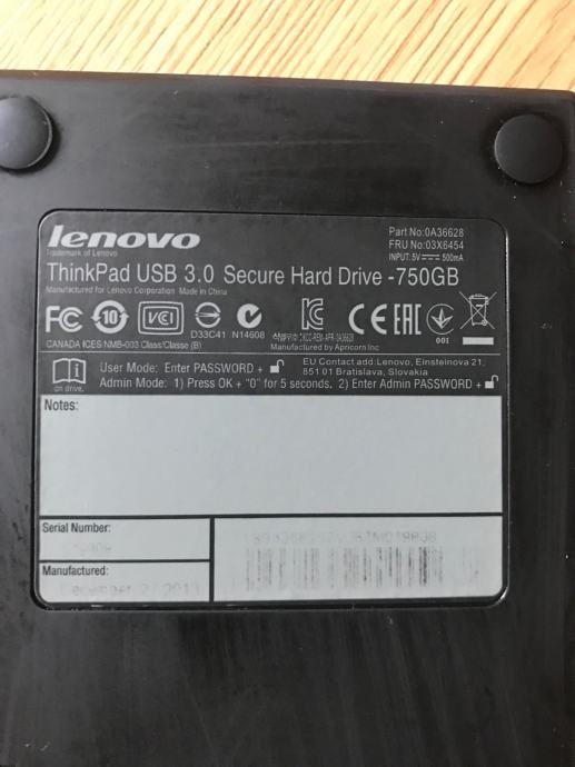 Lenovo ThinkPad Secure Portable Hard Drive USB 3.0