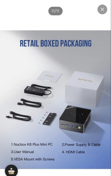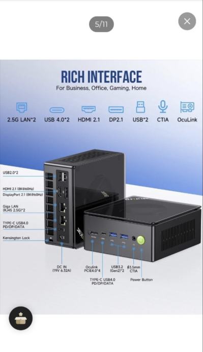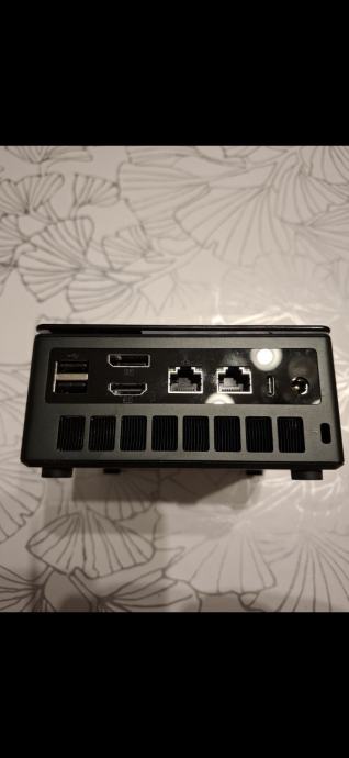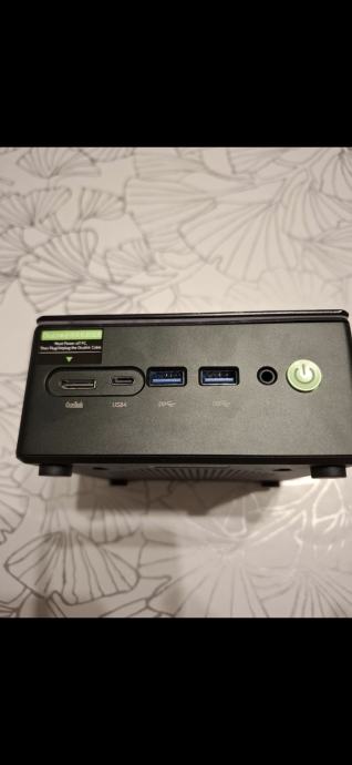 Prodajem mini PC GMK tec K8 u barebone izvedbi. Radi se o kompaktnom stolnom računalu malih dimenzija, crne boje. Na prednjoj strani nalaze se USB-C priključak, dva USB 3.0 porta, audio priključak i tipka za uključivanje, dok se na stražnjoj strani nalaze HDMI izlaz, USB port, dva LAN priključka te priključak za napajanje. Barebone verzija znači da uređaj dolazi bez RAM-a, SSD-a i operacijskog sustava, što omogućuje odabir komponenti prema vlastitim potrebama. Dolazi s originalnom kutijom i pripadajućim priborom.