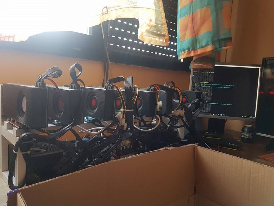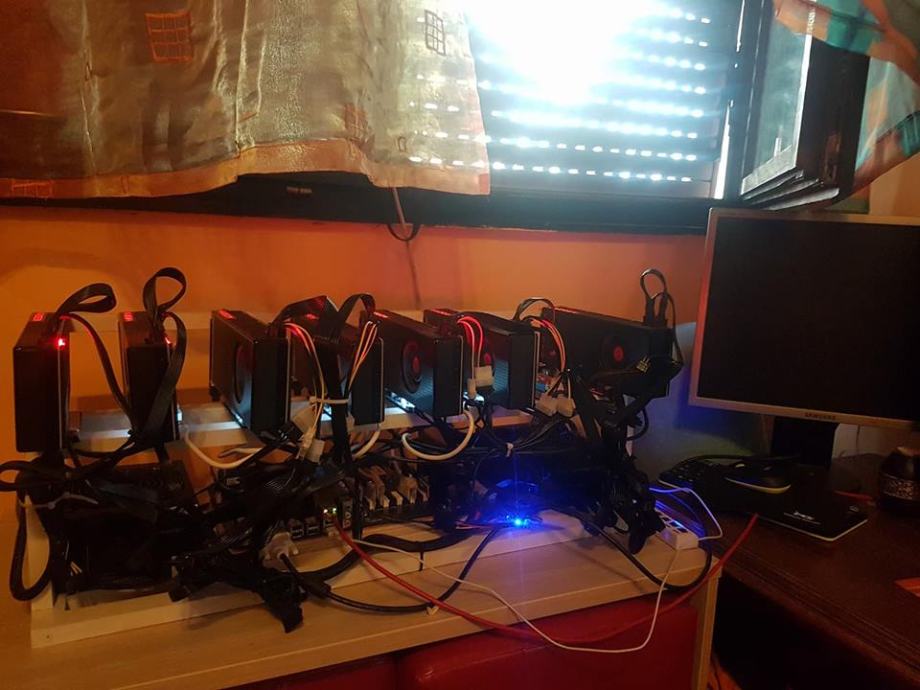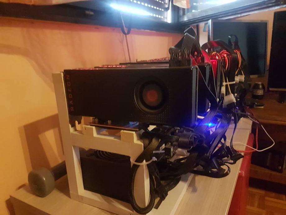 Računalo, takozvani rig, sa 7 super brzih grafičkih kartica RX Vega 64,