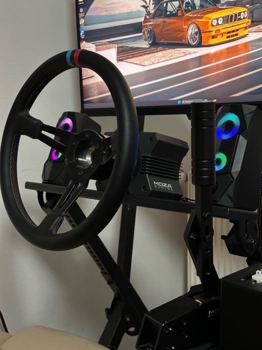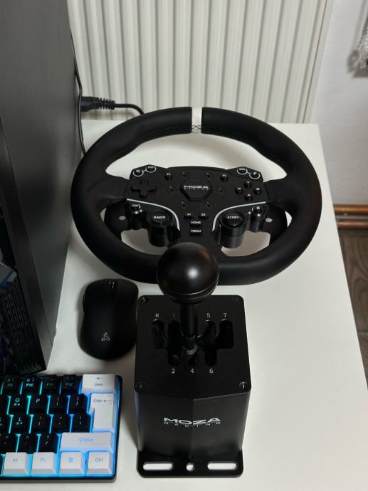 Na setupu je trenutno aftermarket mjenjac, jer je na MOZA mjenjacu pukla neka zicica, nisam se s time isao igrat, uzeo sam ovaj drugi koji radi posao odlicno, MOZA mjenjac ide uz setup takoder.