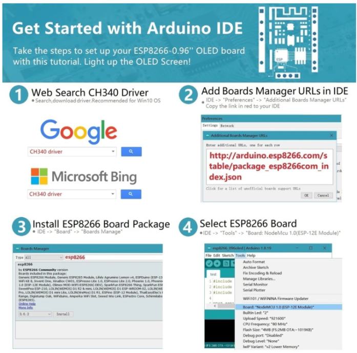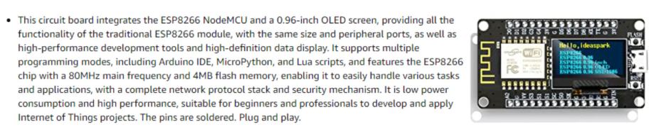 NodeMCU ESP8266 razvojna ploča s 0,96'' OLED zaslonom, CH-340, ESP-12E WiFi modulom,