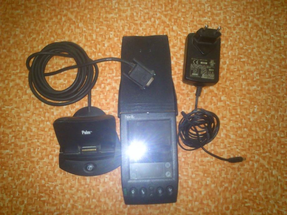 Palm IIIc sa pripadajućim punjačem (USA/šuko utičnica). stylusom i HOTSYNC cradlom (COM, moguće i irda povezivanje). Retro oprema.
