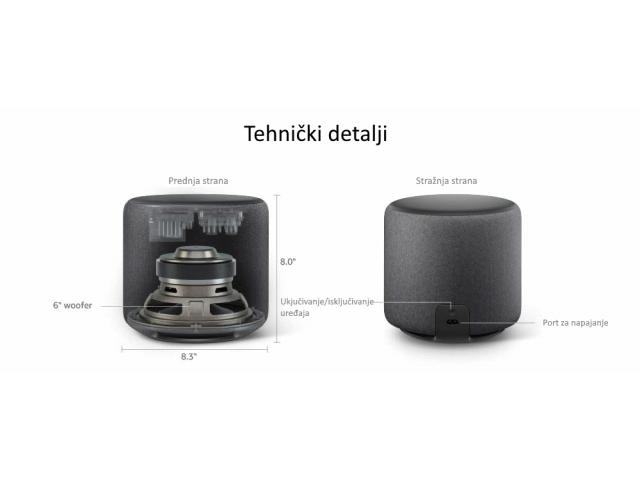 S Echo Sub i kompatibilnim Echo uređajem možete dodati bogat bas svom glazbenom iskustvu. Echo Sub isporučuje 100 W duboki bas zvuk kroz 6” woofer. Kada ste upareni sa svojim Echo uređajem, možete osjetiti glazbu dok ispunjava prostoriju - samo recite "Alexa, pusti glazbu". Kružno kućište omotano je tamnom tkaninom od drvenog ugljena, što odražava stil najnovijih uređaja. Sub je izuzetno jednostavan za postavljanje i korištenje, samo se priključite, otvorite Alexa aplikaciju i povežite.