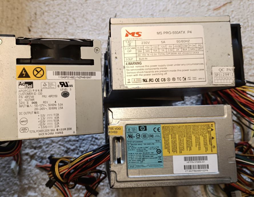 Starija pc napajanja. Ispravna. Više komada. Mogu preraditi izlaze za 12v 3v i 5v.
