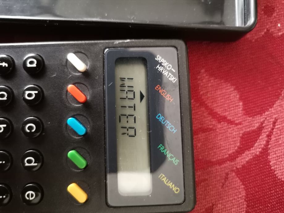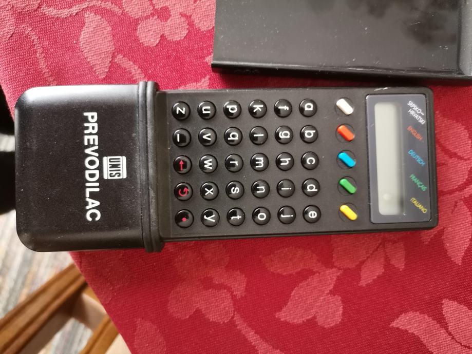 ... Elektronski uređaj iz Jugoslavije koji prevodi hrvatske riječi na 4 europska jezika. Dobro dođe iznajmljivačima pri prvom susretu s gostima... I sl.