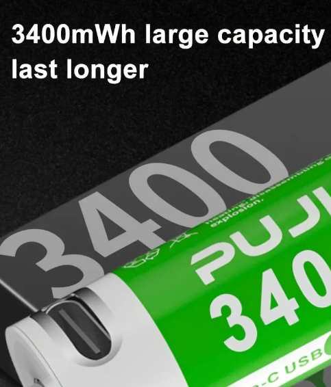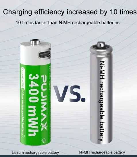 Ove baterije imaju kapacitet 3400 mWh i napon 1,5 V za razliku od NiMH baterija koje imaju napon 1,2 V, 5X se brže pune i imaju 50% veći kapacitet.