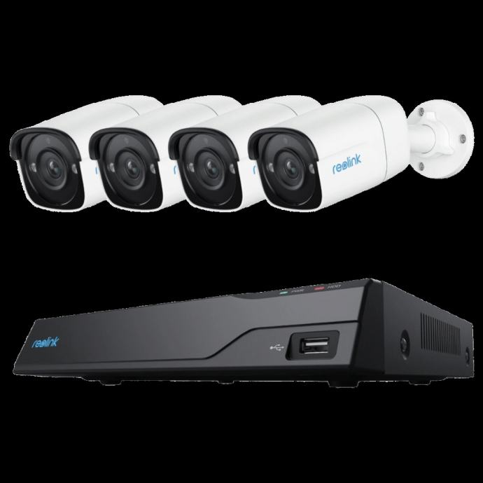Reolink RLK8-410B4-5MP IP PoE komplet za video nadzor s 8 kanalnim snimačem i četiri 5MP (SuperHD) kamere, uključen hard disk od 2TB. Ugrađena mogućnost prepoznavanja osoba i vozila.