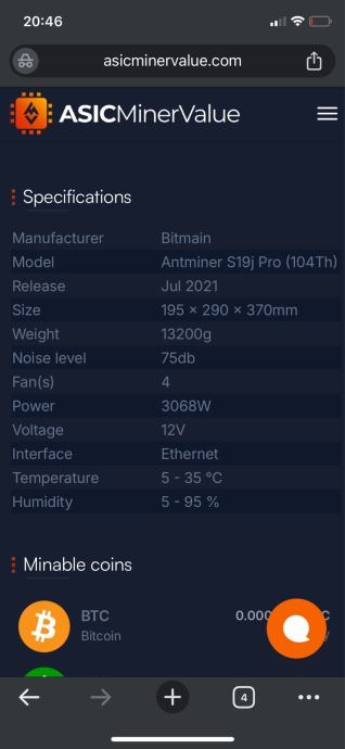 Potpuno novi ASIC S19j pro snage 104T trenutni prihod 222 dolara uz potrošnju od samo 3068w w, moguće plaćanje u cryptu(2% jeftinije), u koliko nije na stanju dobavljiv je kroz 3/4 dana